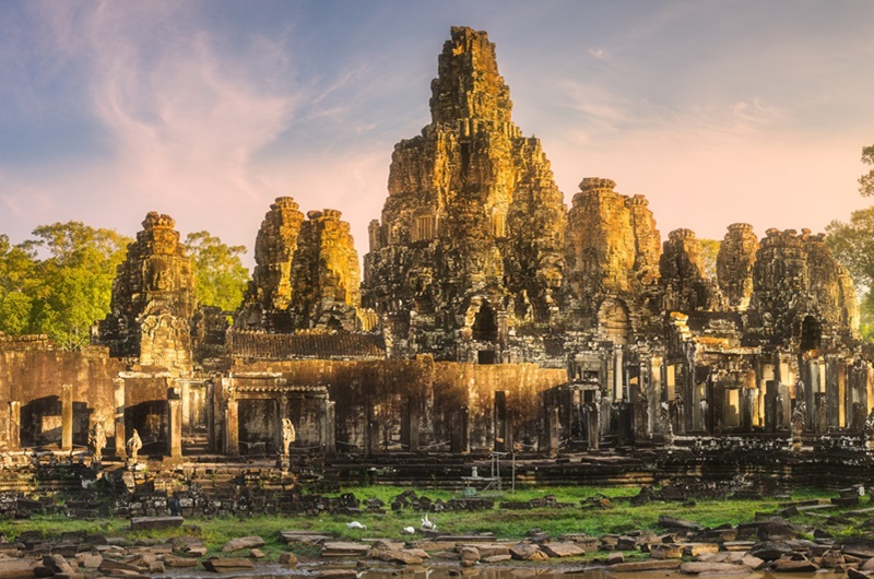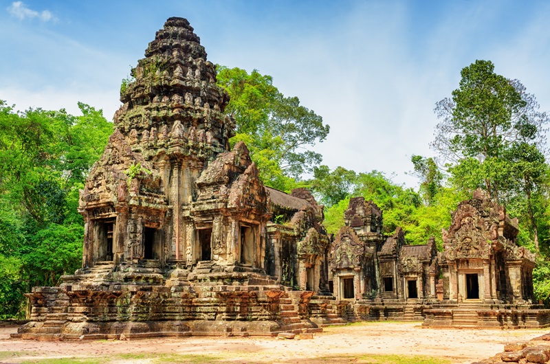 Pequeno-almoço. Visita da parte norte de Angkor: o templo de Preah Khan, construído em 1191, o templo de Neak Pean, situado no cimo de um ilhéu e os templos Thommanon e Chau Say Tevoda. De tarde, visita do Templo Bayon, do Terraço dos Elefantes e do Terraço do Rei Leproso. Jantar com espetáculo de dança. Alojamento.